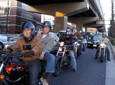 | こうしてモーターサイクルショーの会場で いろいろなバイクにまたがったり 商品を見たりした後。。。 「花見でも行く?」という話になりました。 しかしバイクで来ていない、 いくらさんとMintoさんをどうするべきか。。。 とメットはあったのでタンデムで行けばいいと 一件落着(笑) そこで世田谷の駒沢の方でも行くか? などなどという話になりましたが 神奈川の白りんごさんより電話が入り ナップス世田谷店で集る事となりました。 そこで白リンゴさんの待つナップス世田谷店へ〜 レインボーブリッジを渡り国道15号に出た時 市川牛さんは先にお別れということでした。 牛さん、また集まって遊びましょうねっ。 こうしてAPさん、いくらさん、WAMさん、Mintoさん、 たかさん、てくさん、もんまは道を進みます。 国道15号から明治通りに入り、 そして(Mintoさんのご要望によりw)渋谷駅前から国道246号線へ。 |